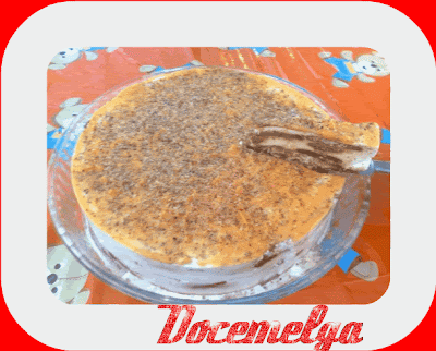 Deitar tudo sobre a gelatina, desfazer por cima a bolacha e levar ao frigorífico.